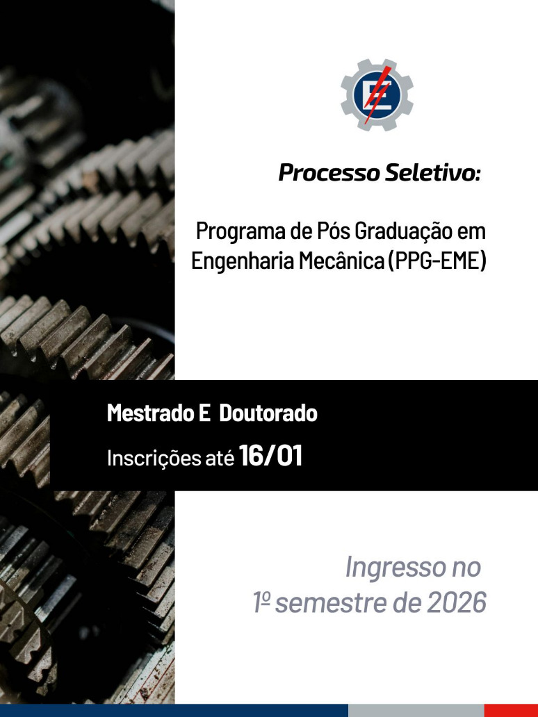 Estão abertas as inscrições para os cursos de Mestrado e de Doutorado do Programa de Pós-Graduação em Engenharia Mecânica (PPG-EME)