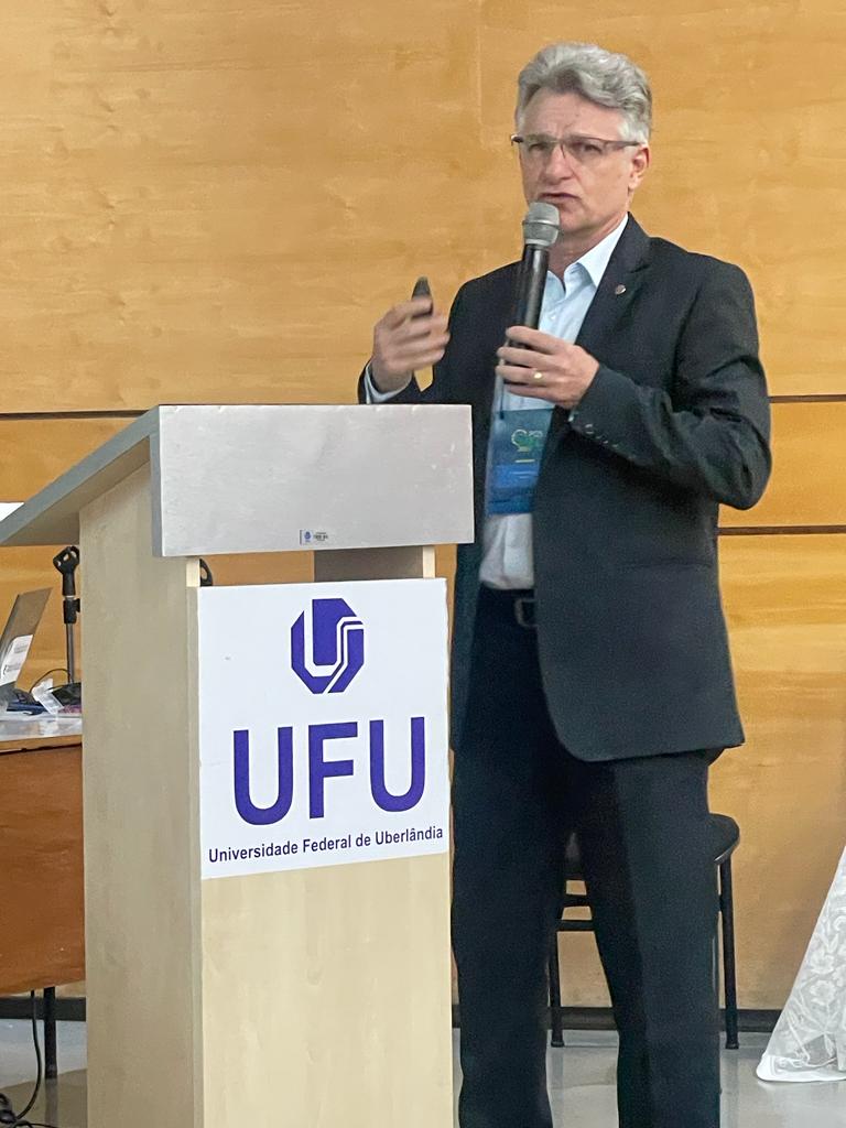 A sessão de abertura contou com três palestras. A primeira foi ministrada pelo Prof. Valder Steffen Jr., intitulada “A UFU e os Desafios da Ciência e da Tecnologia”. A segunda palestra foi apresentada pelo Prof. Gherhardt Ribatski, Coordenador de Área de Engenharias III da CAPES, tendo por título “Avaliação CAPES Engenharias III: Resultados e Perspectivas Quadriênios 2017-2022, 2021-2024 e 2025-2028.”