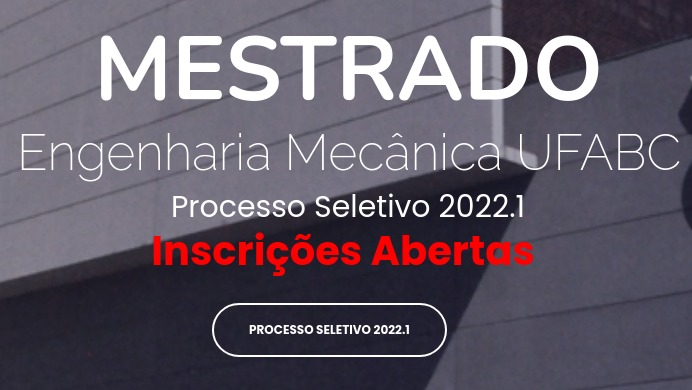 O Programa de Pós-Graduação em Engenharia Mecânica (PPG-MEC) da Universidade Federal do ABC (UFABC) torna público o processo para a seleção de candidatos para ingresso no Curso de Mestrado Acadêmico, stricto sensu, com início previsto para o primeiro quadrimestre de 2022.