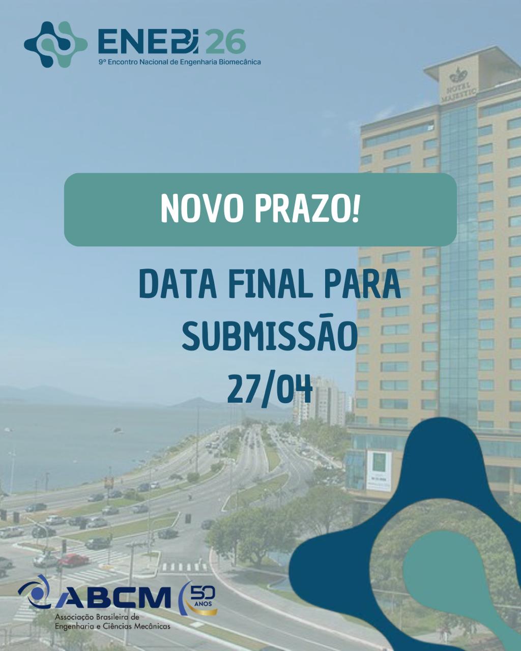 Atenção: este é o prazo final para envio dos trabalhos.Não perca a oportunidade de apresentar sua pesquisa em um dos principais fóruns científicos da área de engenharia biomecânica. A programação contará com workshops, mini-cursos, sessões temáticas, palestras convidadas, apresentações técnicas e sessões de pôsteres.